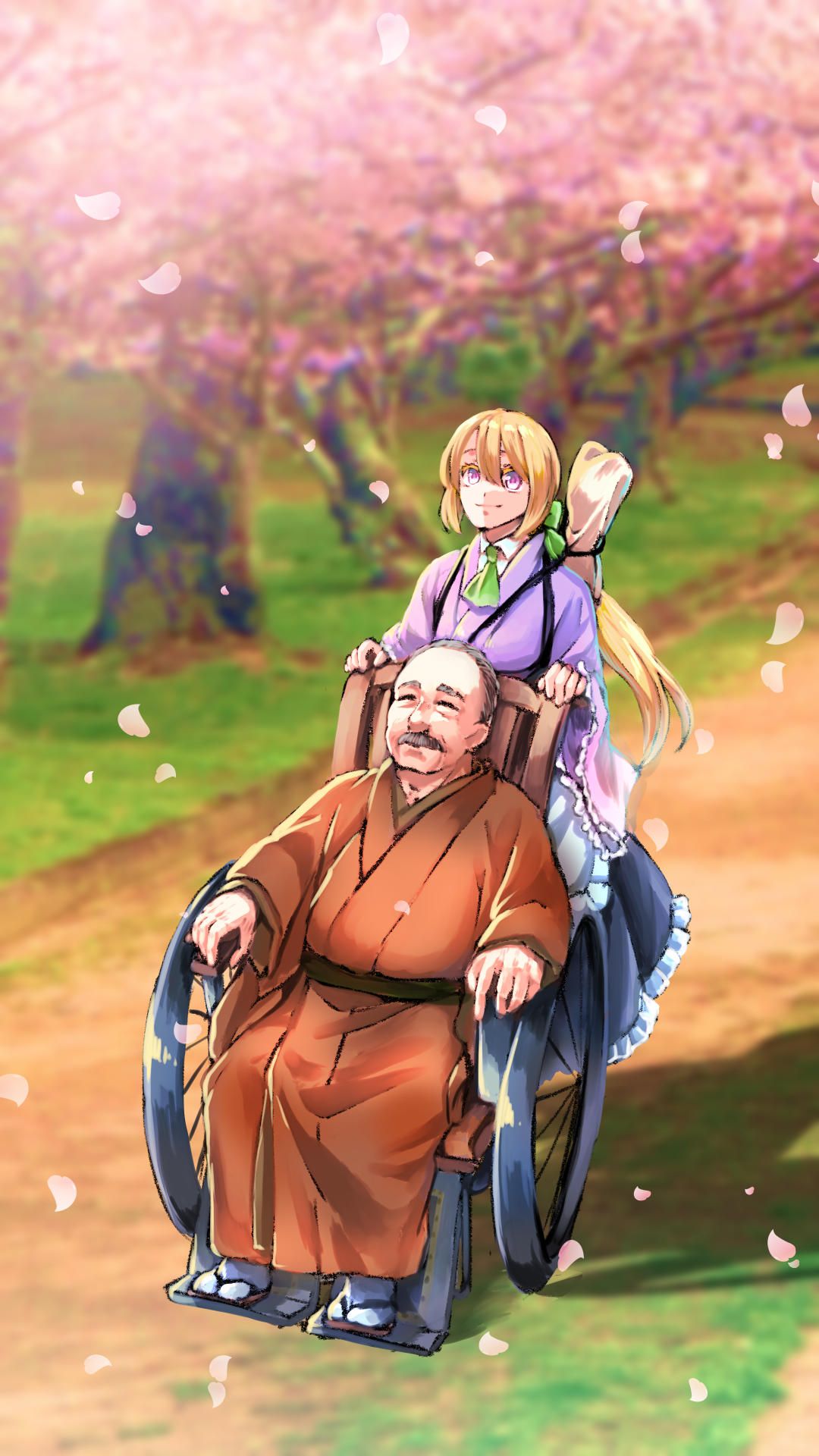アイキャッチは先月描いた愛二郎さんご命日絵。萩城に埋めた桜を見に来た体で、最晩年ぐらいのイメージで。