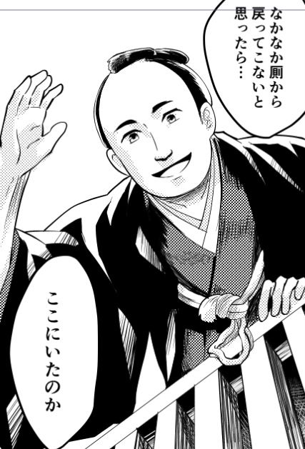 三セカでは一コマだけ現れて一瞬で死んだ本間さん、今回はがっつり話に絡みます。土佐勤の同志ではあるけど当事者ではないので、一番以蔵のことも武市先生のことも客観的に見れる立場だと思って描いてるよ。(三セカだと貞也ポジションに近いかもしれない。すぐ死ぬけど)