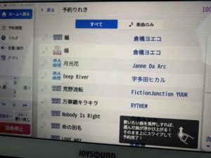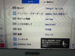おもちさんの選曲がいい具合に我々世代のオタク心を突き刺してくる。さすがおもち先生わかってらっしゃる……👍途中私がiPadをカラオケ本体に繋いで音源持ち込むとかいう暴挙もやらかしたので、履歴に入ってない曲もあるよ(マジキチスマイル)(最後に入れたヨエコさんの「楯」は私がぶち込んだよその子のイメソン)