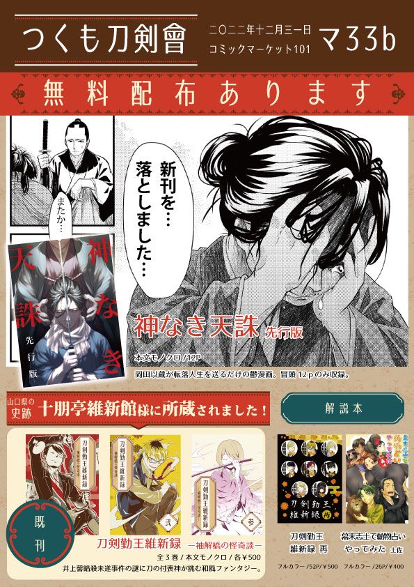 【C101無配サンプル】神なき天誅【追記でお品書き&拍手返信】