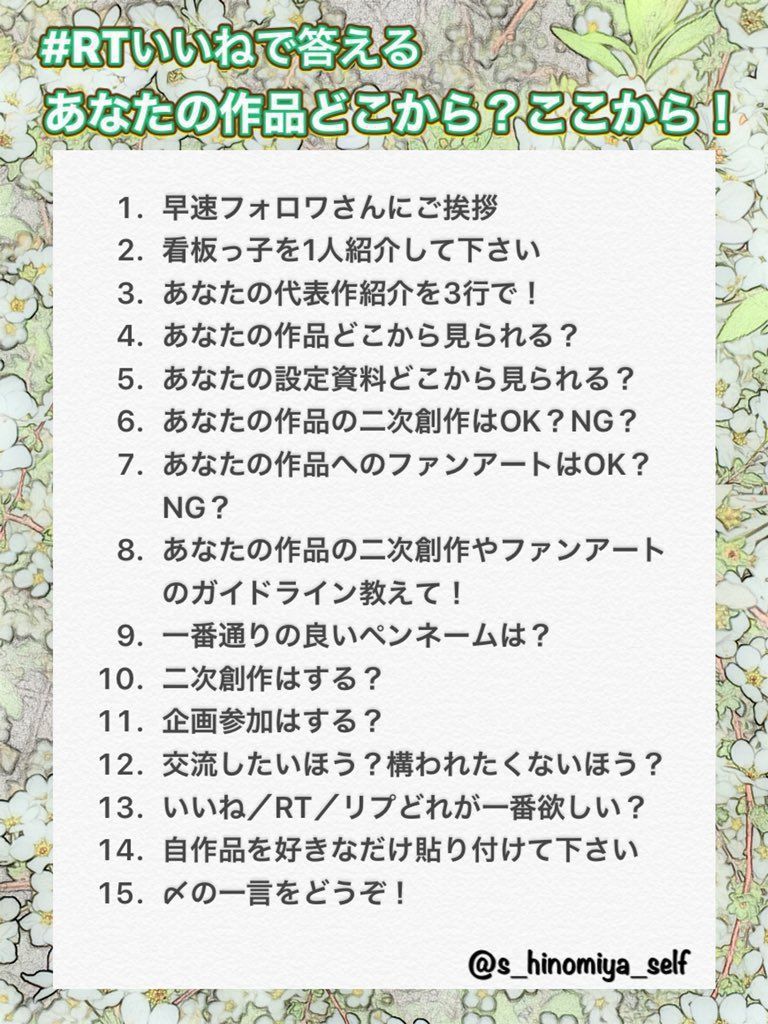 #RTいいねで答える あなたの作品どこから?ここから!
