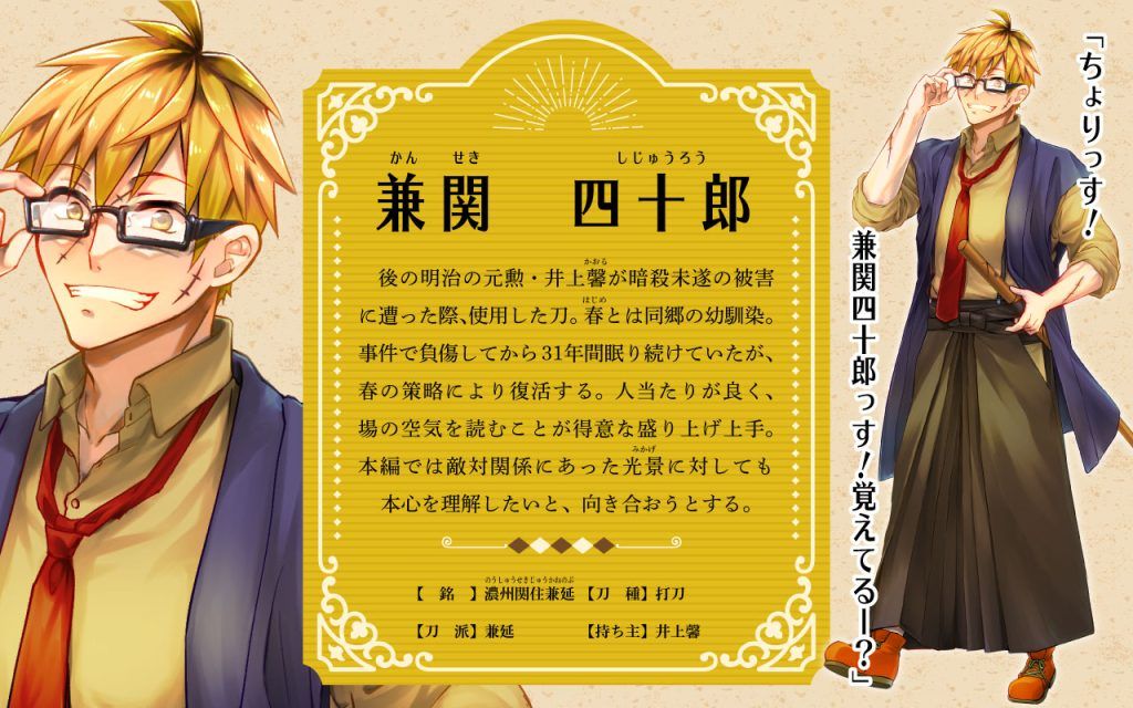 犯人側の付喪神である光景とは敵対関係にあったが、長州藩の暴走を止められなかった結果光景の日常を奪ってしまったことを悔やんでおり、彼女の本心と向き合おうとする。