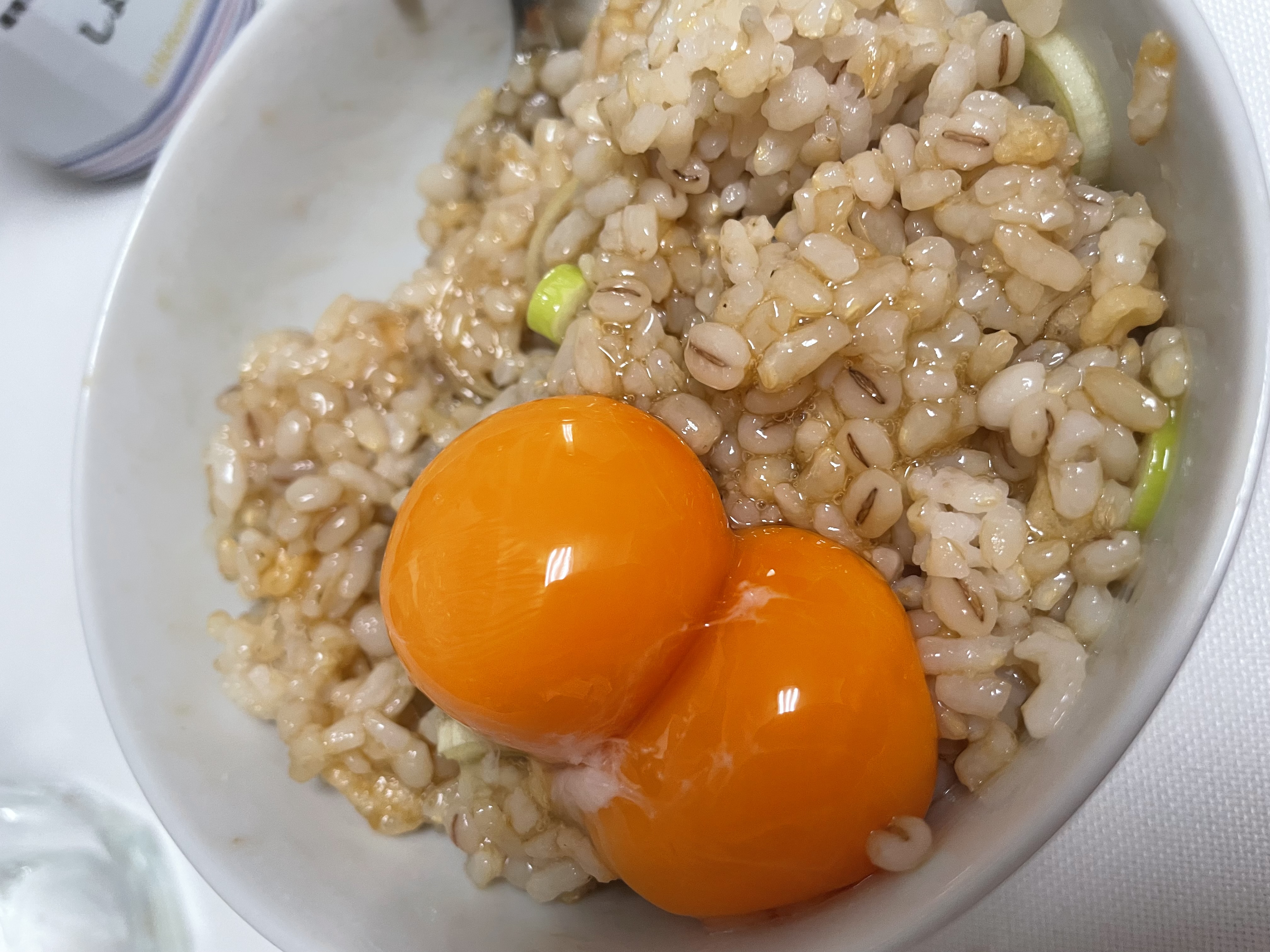 日常 ちょっと前にまぜそば作って卵割ったら双子が出てきて、次の日にTKG食べようとしたらまた双子が出てきた。 旦那に見てみてー!ってやりたかったけどその時旦那は探し物しててそれどころじゃありませんでしたとさ… 2025/06/02