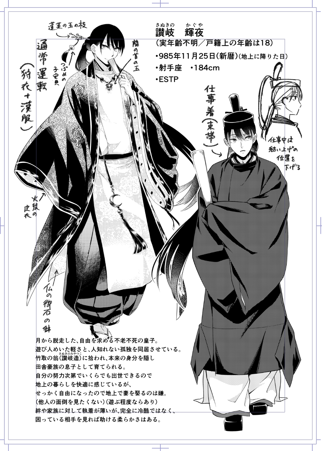 かぐや(仮) ざっくりこんな感じか…!? 当時の女性なら元服したらすぐ縁談になるだろうけど、男性は大学寮に入って官職に就くのかな。 輝夜ぐらいのチート野郎ならさくっと飛び級して中宮少進ぐらいにはなれるだろう。 立場的には部下(中宮職)×上司(中宮)になるんかな? 2025/10/13