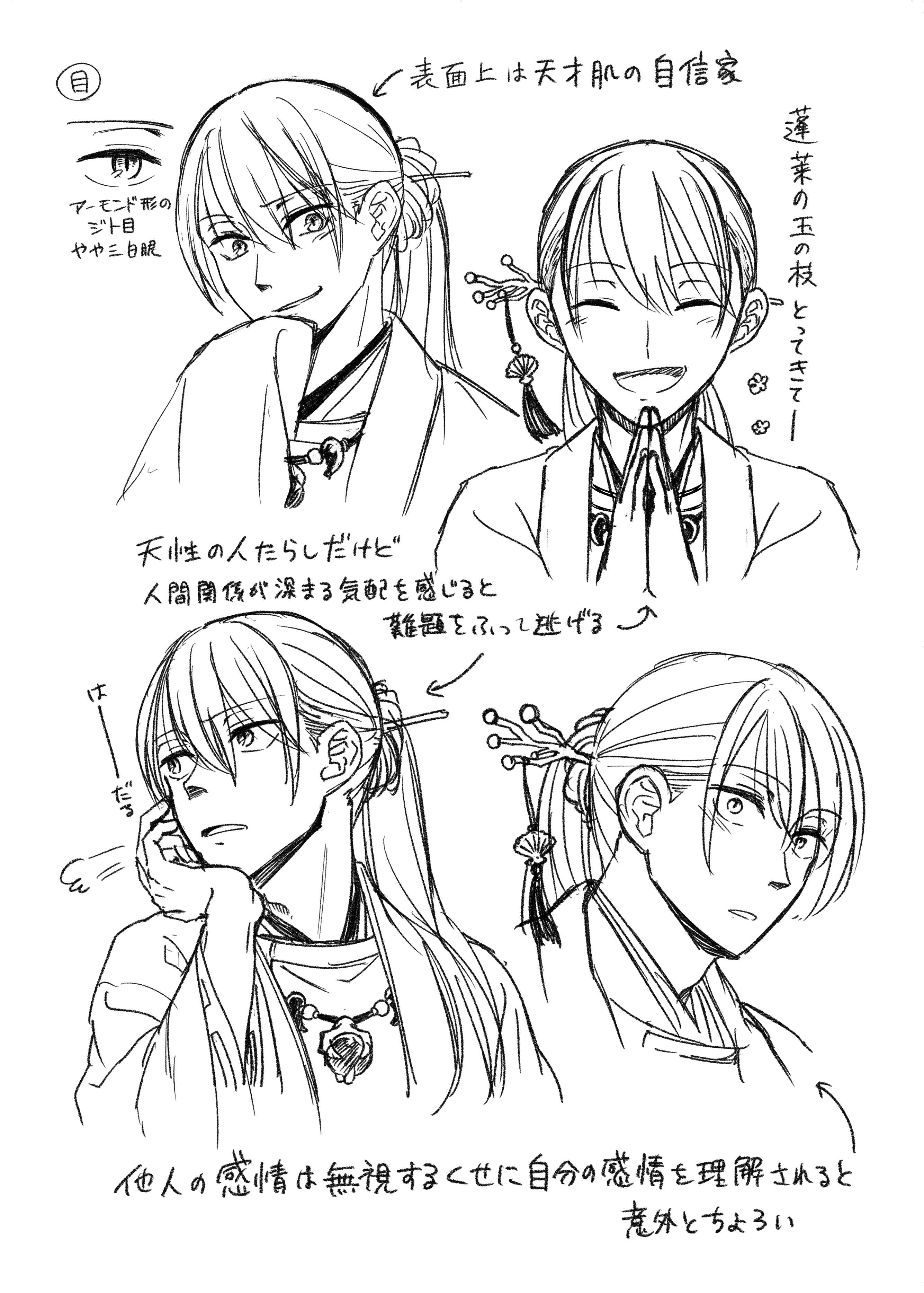 高校時代の黒歴史をほじくり返し、当時妄想していた東方のてるよ男体化を一次創作に転生させる手術を施してみている。 今思うと春や素狂の原形はこいつなんかもしれない。 既にめちゃくちゃ恥ずかしいけど、恥ずかしいってことは多分ここに何か眠ってるんだと思うので、当時の私の願望を解剖せねばなるまい。 2025/08/02